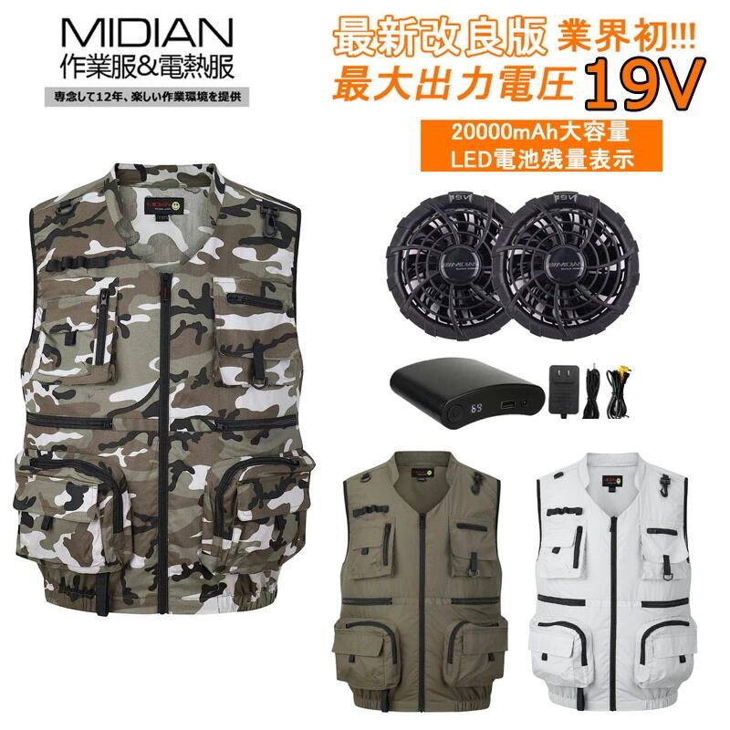 MIDIAN 空調ベスト 空調作業服 半袖 ファン付き ベスト バッテリー付き 電動 最強 UVカット 作業服 3D立体 循環送風 レディース メンズ