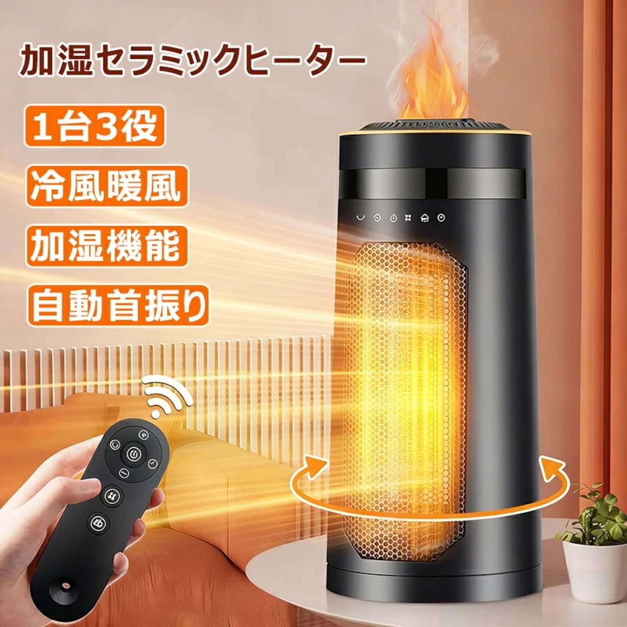 セラミックヒーター 冷暖兼用 加湿器 霧化加湿 2S速暖小型 タイマー 自動首振り 省エネ 足元暖房 1台3役 即暖 速暖 温風 送風 3段階切替 3D炎効果