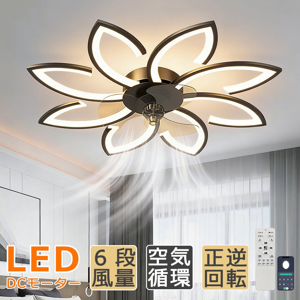 【5年保証】シーリングファンライト LED おしゃれ APP対応 ファン付き照明 6段階風量調節 DCモーター 超高輝度 天井照明 照明器具 6畳 8畳 10畳 12畳 調光調色 北欧 電気 シーリングファン オシャレ リモコン付き