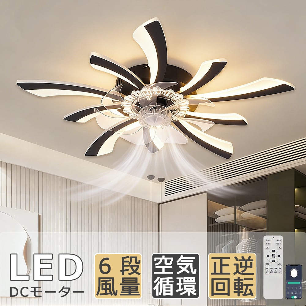 シーリングファン LED 8畳花形 おしゃれ シーリングファンライト 5灯/6灯 V形調光調色 正逆回転機能 空気循環 6畳 12畳 北欧 照明 ファン付き照明