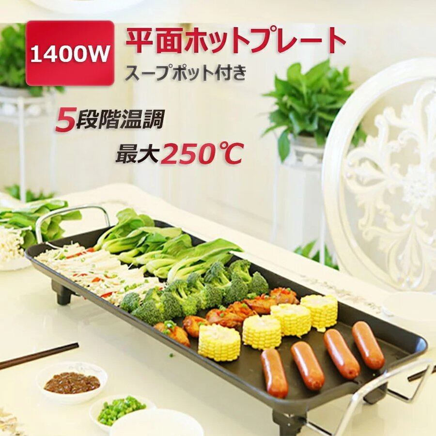 ホットプレート 平面プレート キッチン家電 1400W 100℃~250℃調温 家電 パーティ調理器具 お好み焼き 家族1~5人用 大容量 スープポット付 おすすめ