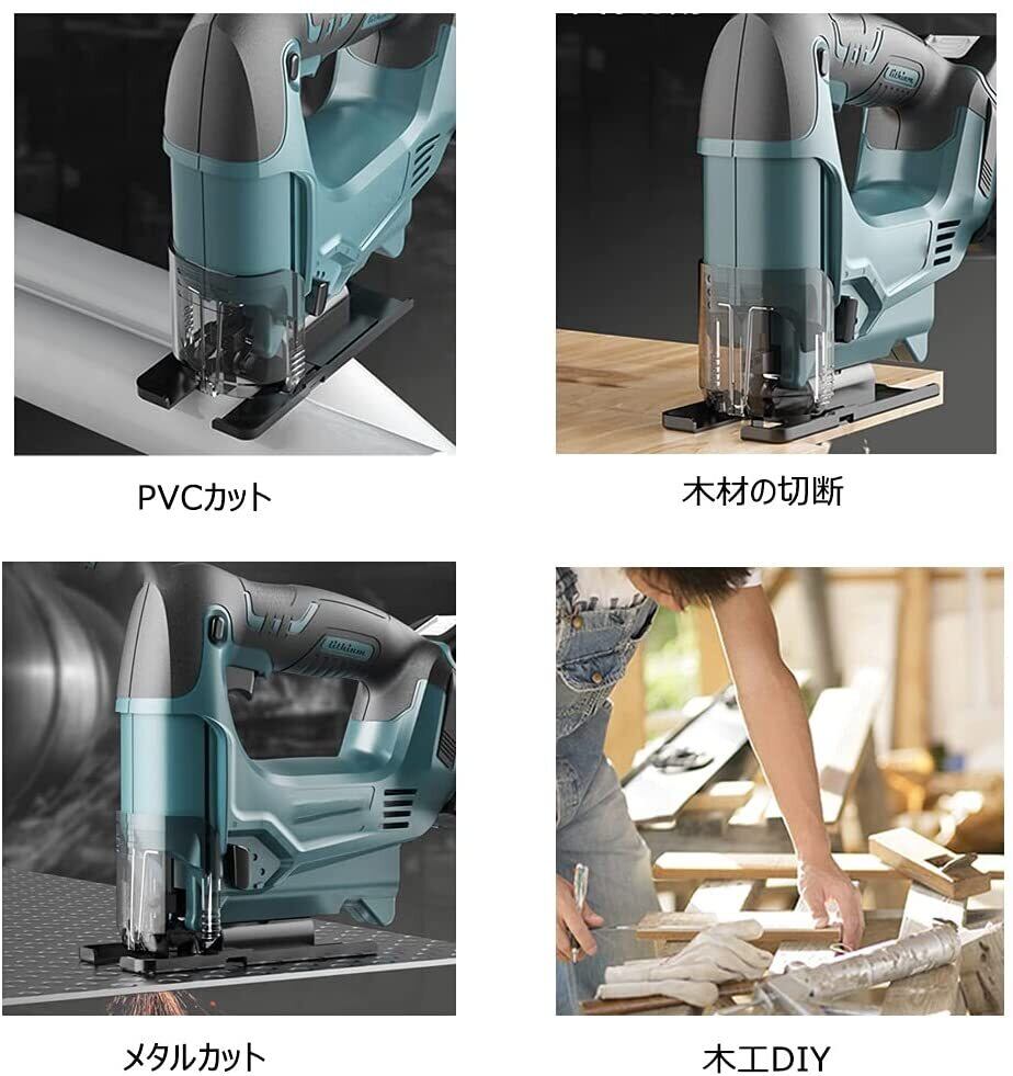 電動ジグソー ジグソー 切断 工具 家庭用 電動のこぎり 充電式 コードレス 電動ノコギリ 電動工具 充電式ジグソー 4調整可能な速度 18Vマキタ バッテリー併用