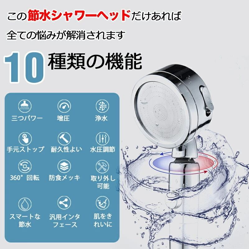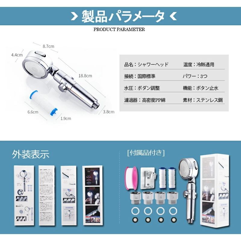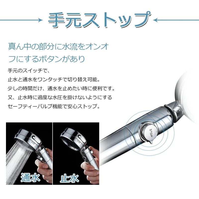 マイクロナノバブル シャワーヘッド 日本製 3段階モード 70%節水 塩素除去 浄水 増圧 水圧強い 止水ボタン 工具不要 360°調整 アダプター付 国際汎用基準G1/2