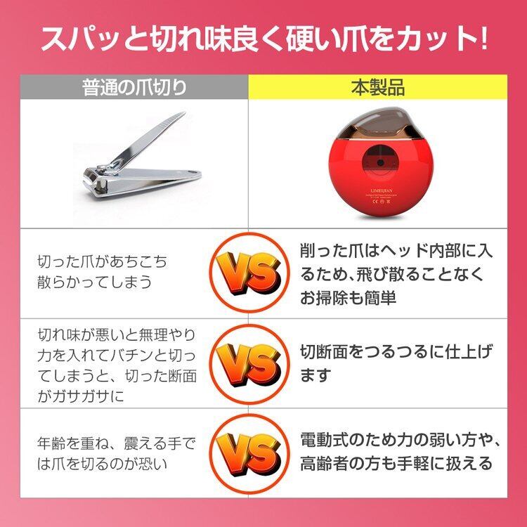 電動爪切り 爪切り 爪磨き 削り器 ツメキリ 爪やすり 爪ケア 回転刃 自動USB充電式 回転式 深爪防止 軽量設計 静音 子供 赤ちゃん 安心安全 介護 足巻き爪