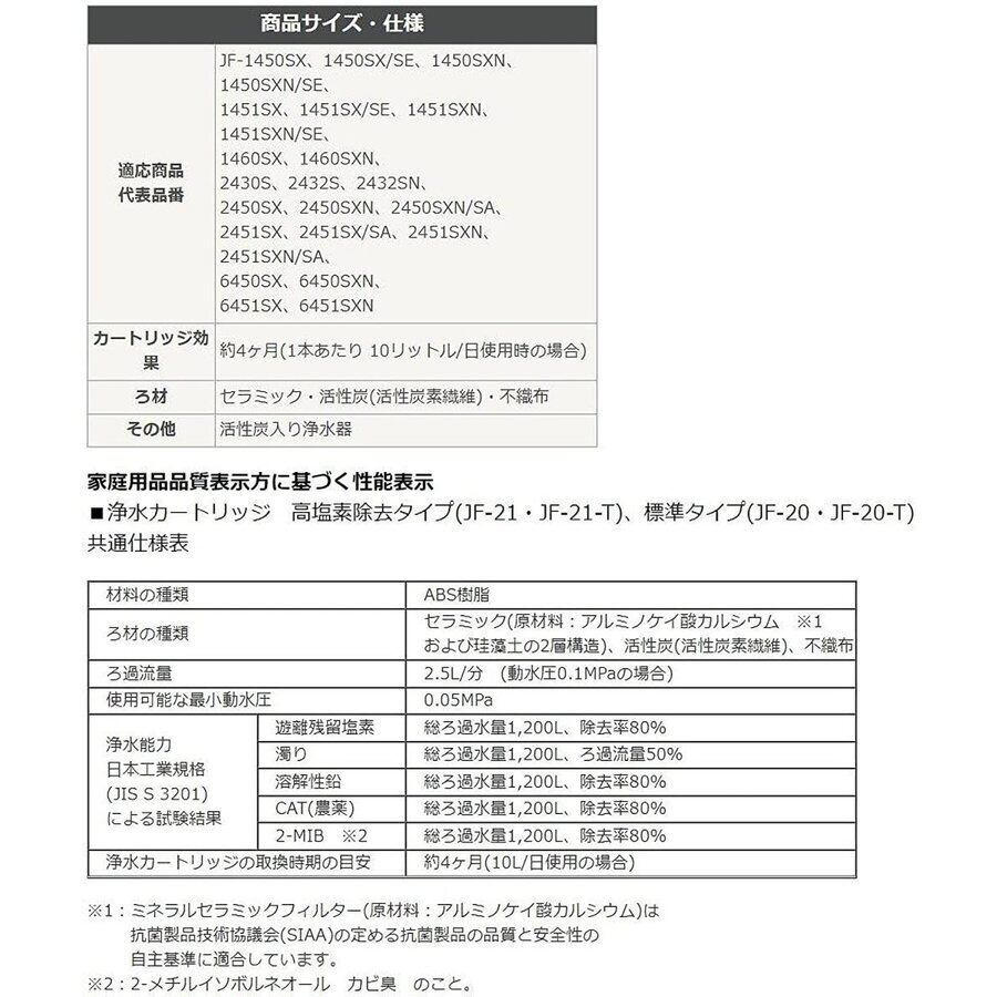 LIXIL INAX JF-20 オールインワン浄水栓交換用カートリッジ リクシル イナックス 標準タイプ(5物質)2本セット 敬老の日