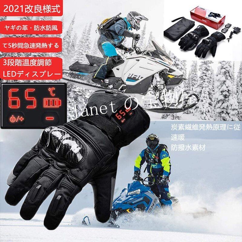 電熱グローブ ヒーターグローブ 充電式 バイク 自転車 5秒速暖 3段階温度調節 LEDディスプレー タッチパネル対応 モバイルバッテリー付き 防寒 防風 防水 耐衝撃