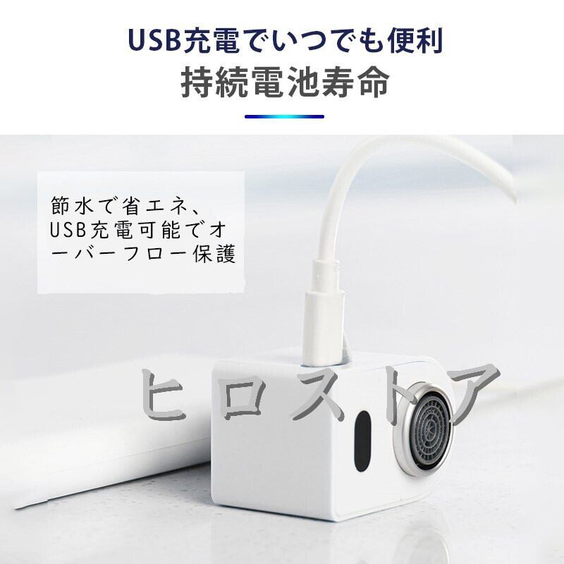 ●USB充電式: 自動蛇口内部でリチウム電池が内臓され、乾電池が必要がありません。充電用のUSBケーブルが付き、一回で3時間の充電で半年の連続使用が可能なので、優れた節電効果も期待できます。(ご注意:使用前3時間の充電が必要です。)