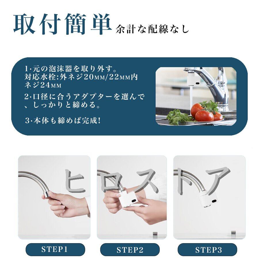 ●簡単取付: 2021最新型自動水栓!M24&M22の2タイプアダプター&3種類のワッシャーが付属され、直径20mm-24mmの蛇口に適合する。組み立て式で取り付けが非常に簡単で、女性でも5分間取り付け完了、インストールの時間も楽しめます。