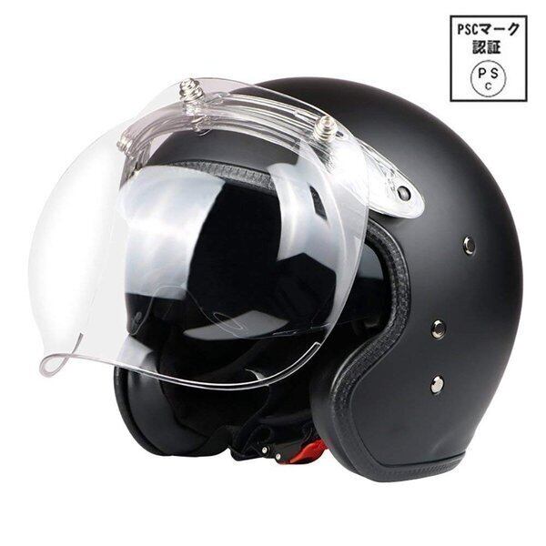 半帽ヘルメット バイクヘルメット ハーフヘルメット ジェット半帽 半キャップ オールシーズンバブルシールド Vecchio PSCマーク付き