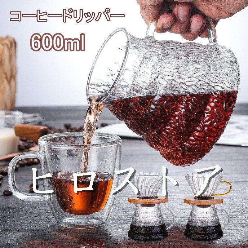 コーヒーサーバードリッパーセット 2~4人分 600ml 耐熱ガラス コーヒードリッパー ドリッパー 天然木 おしゃれ 割れにくい 丈夫 珈琲 アイスコーヒー ギフト