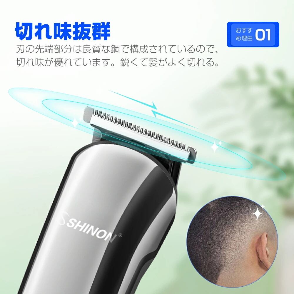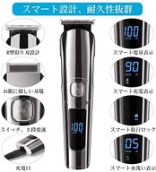 電動バリカンはいろんな種類の刃を持って、ヘアカッター以外にヒゲトリマー/もみあげ用/眉毛・耳毛・鼻毛カッター/すねげ 処理の機能も備えています。軟らかい髪に合う普通モード(6000r/min)と硬い髪に合う強力モード(7500r/min)があります。