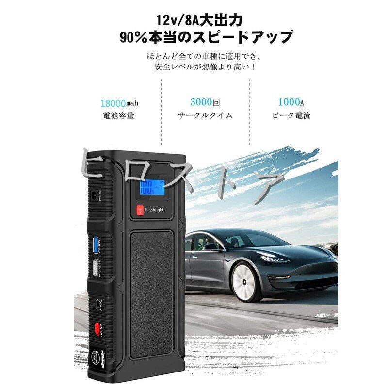 ジャンプスターター 五つ保護機能搭載 エンジンスターター 12V車用エンジンスターター 緊急起動電源 LEDライト付き ジャンプスターター 大容量 18000mAh大容量