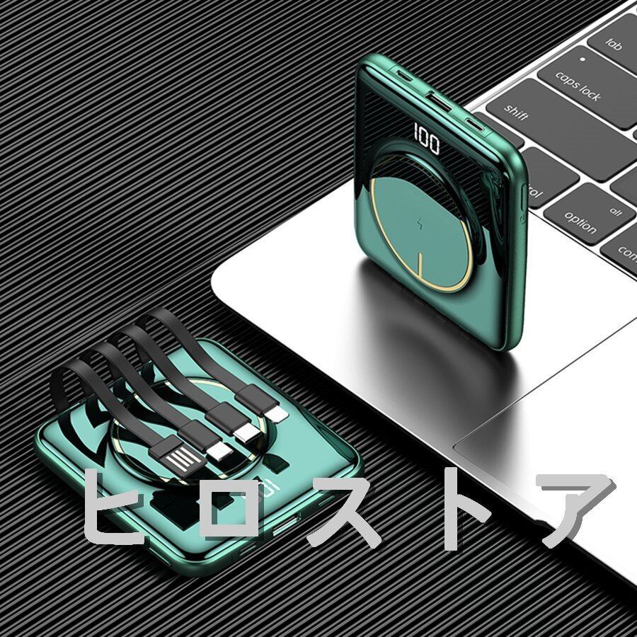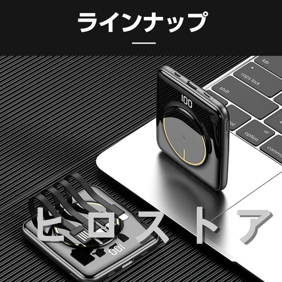 モバイルバッテリー ワイヤレス充電器 小型 軽量 大容量 30000mAh PSE認証済 モバイルバッテリー ケーブル内蔵 qiワイヤレスとusb充電 LCD残量表示