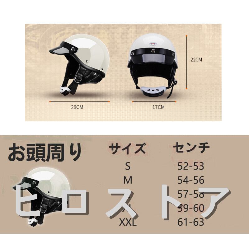 レトロハーレー ハーフヘルメット HALF HELMET 半キャップ 半帽 小帽体 ツバ付き UVカット ガラス繊維 耐衝撃性 通気性良い レディース メンズ サイズM-XXL