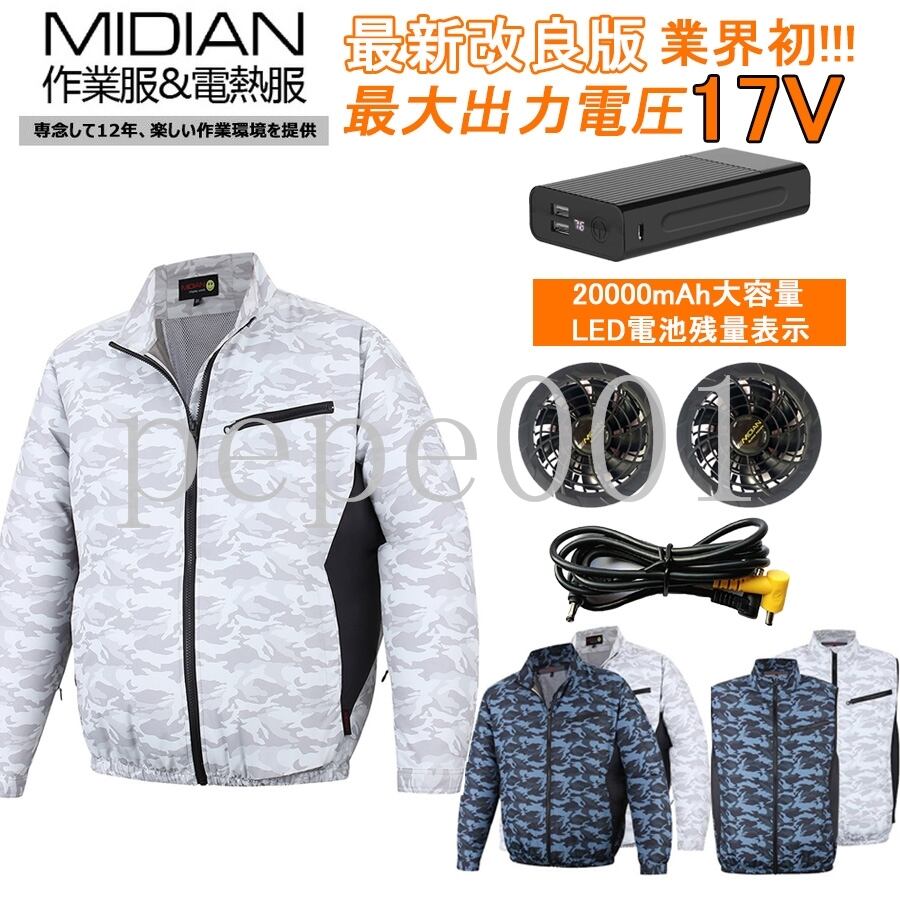 MIDIAN 空調作業服 作業服 ベスト ファン 20000mAh バッテリー セット 12V/17V ファン付き 現場工事 熱中症対策 釣り ゴルフ 猛暑対策 作業着 夏用防暑服