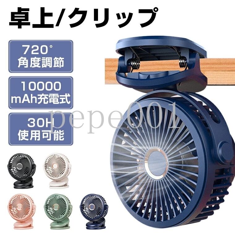 卓上扇風機 クリップ 充電式 ファン10000mAh 扇風機 超強風 ミニ扇風機 熱中 症対策 省エネ 掃除便利 大容量バッテリー 風量4段階 クリップ卓上吊下げ壁掛け