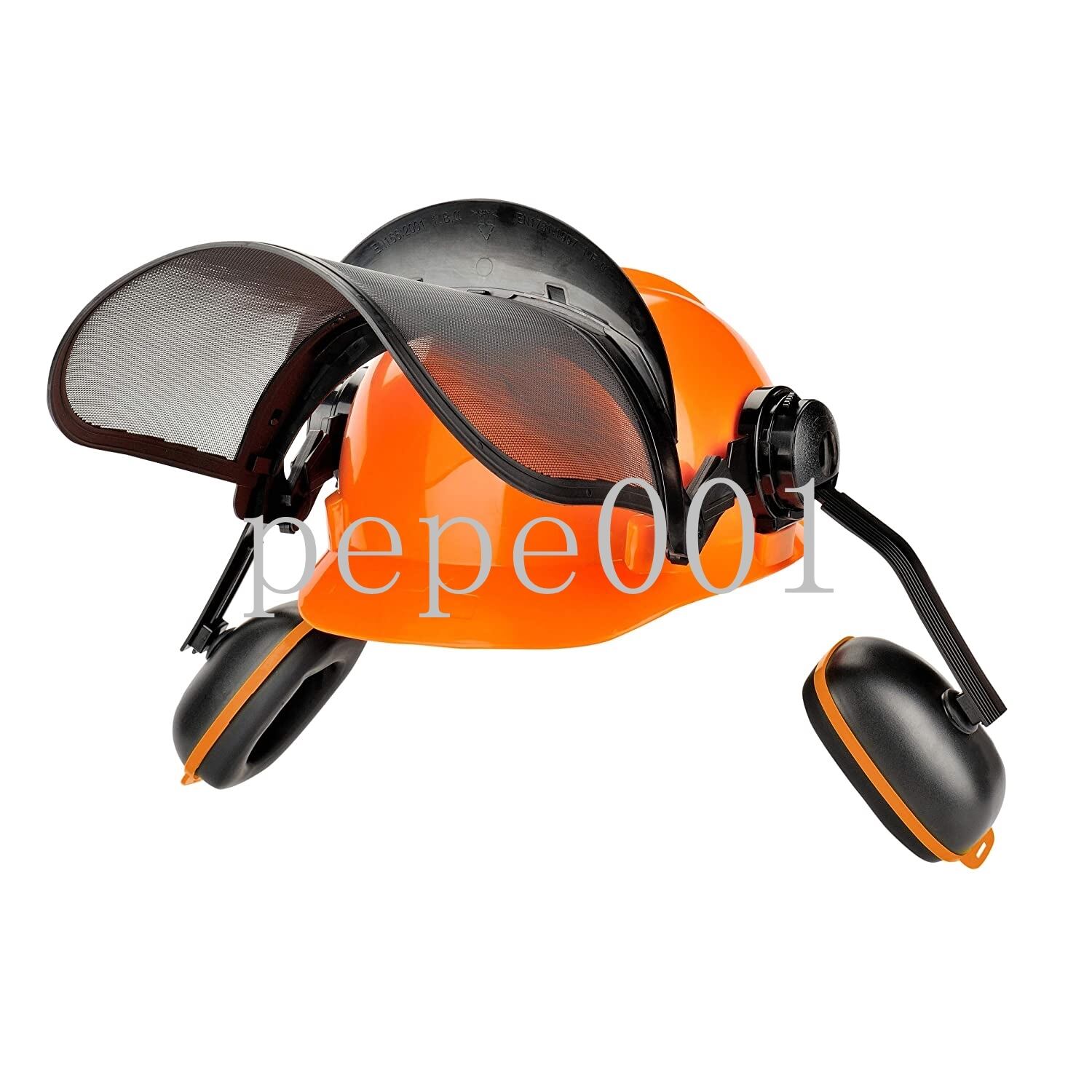 草刈機 作業用 安全ヘルメット顔面保護 聴覚保護 騒音対策 園芸作業 チェーン ソー 草刈り 安全 対策 フェイスガード バイザー イヤマフ付 サイズ調整可