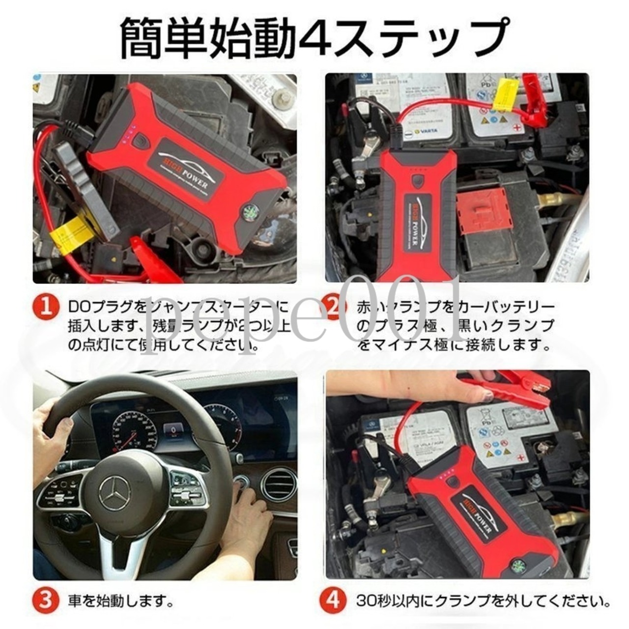 ジャンプスターター 12V車用エンジンスターター 49800mAh 非常用電源 充電器 ポータブル充電器 LEDフラッシュライト 低温起動 スターター PSE認証済み