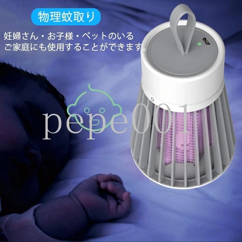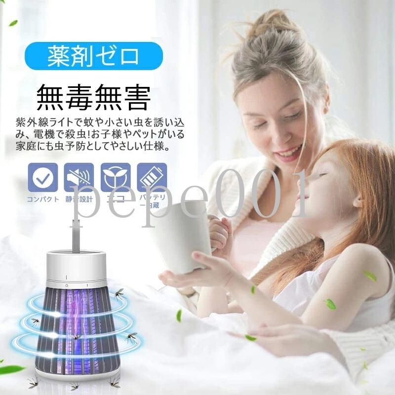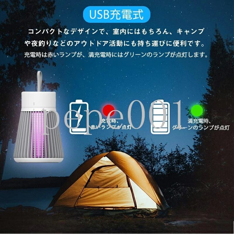 電撃殺虫器 蚊取り UV光源誘引式 殺虫ライト USB充電式 360°全方位 吊り下げ 薬剤不要 室内 家庭用 虫除け はえとり 虫 蝿 夏 防虫器 オフィス 飲食店