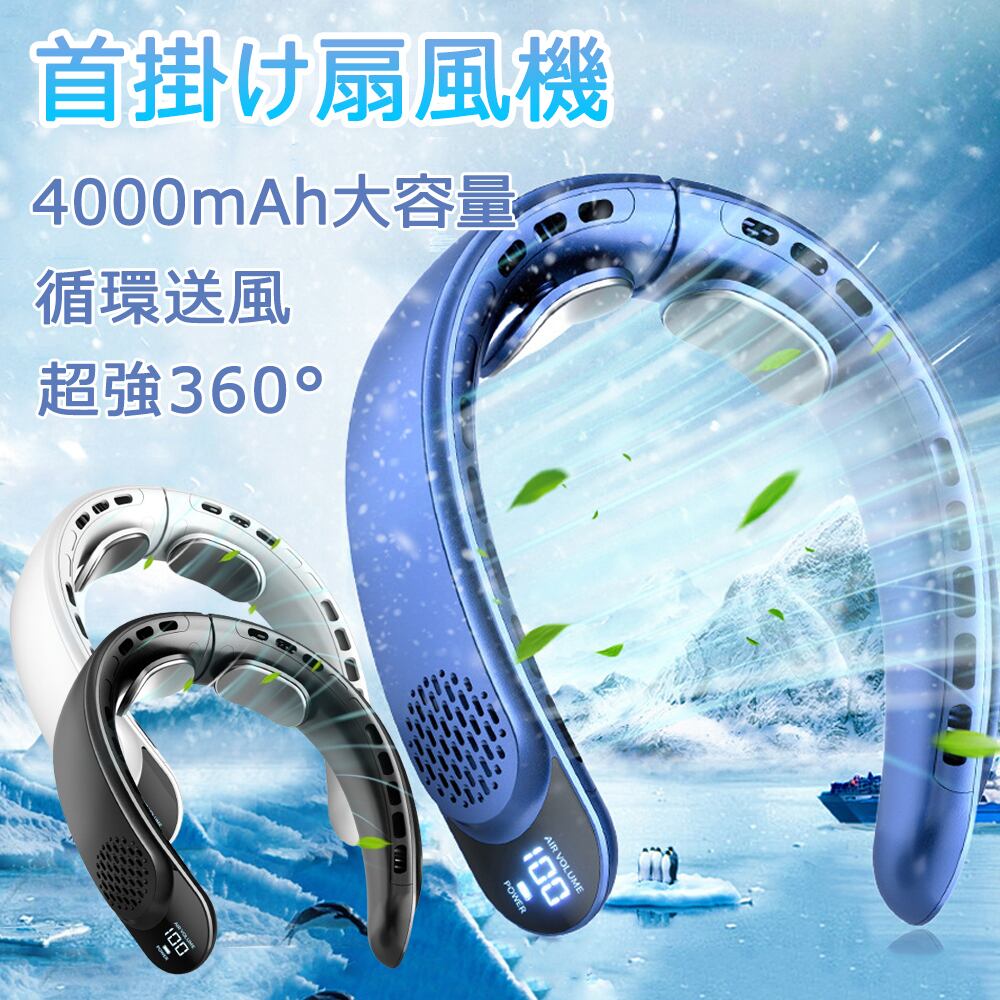 首掛け扇風機 ネッククーラー 羽根なし クーラーネック 扇風機 羽なし 携帯扇風機 3段階風量調節 小型 軽量 大風量4000mAh大容量