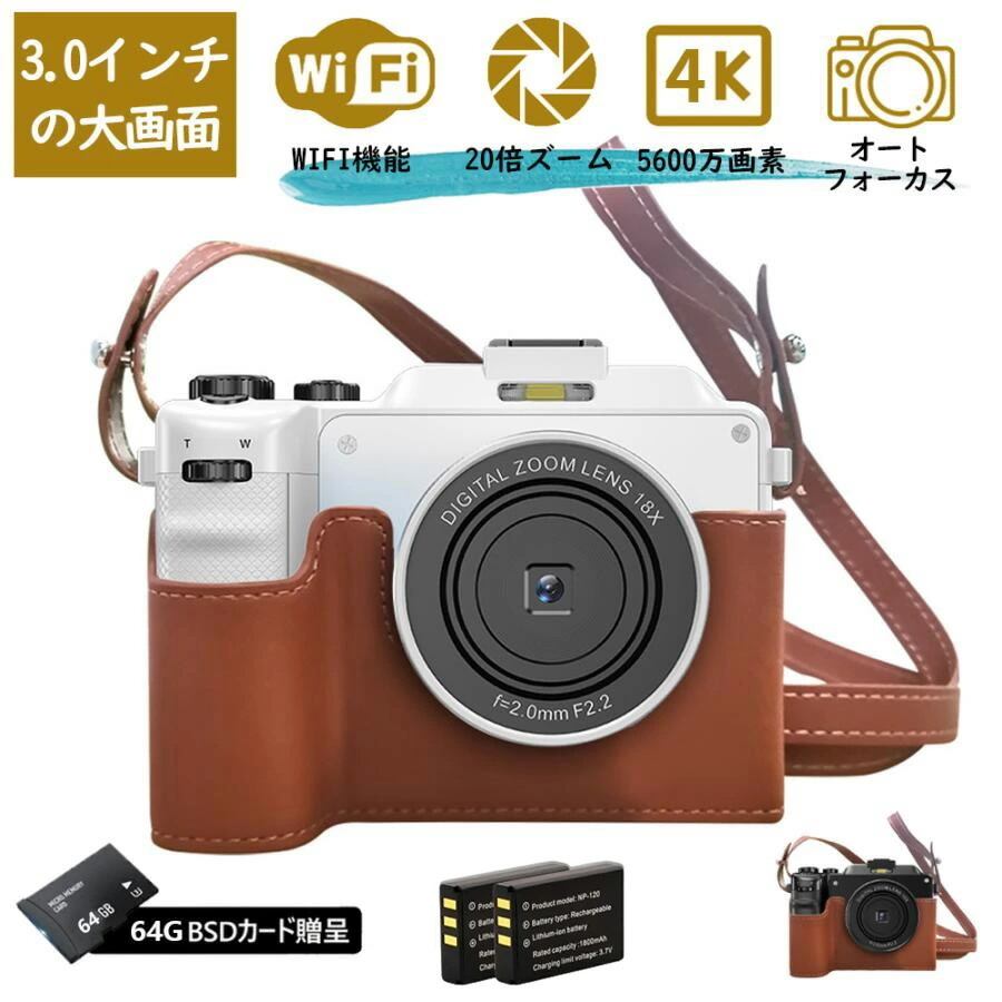 【バッテリー2個+TFカード64GB無料贈呈】 デジタルカメラ 4K 防塵 かわいい 5600万画素