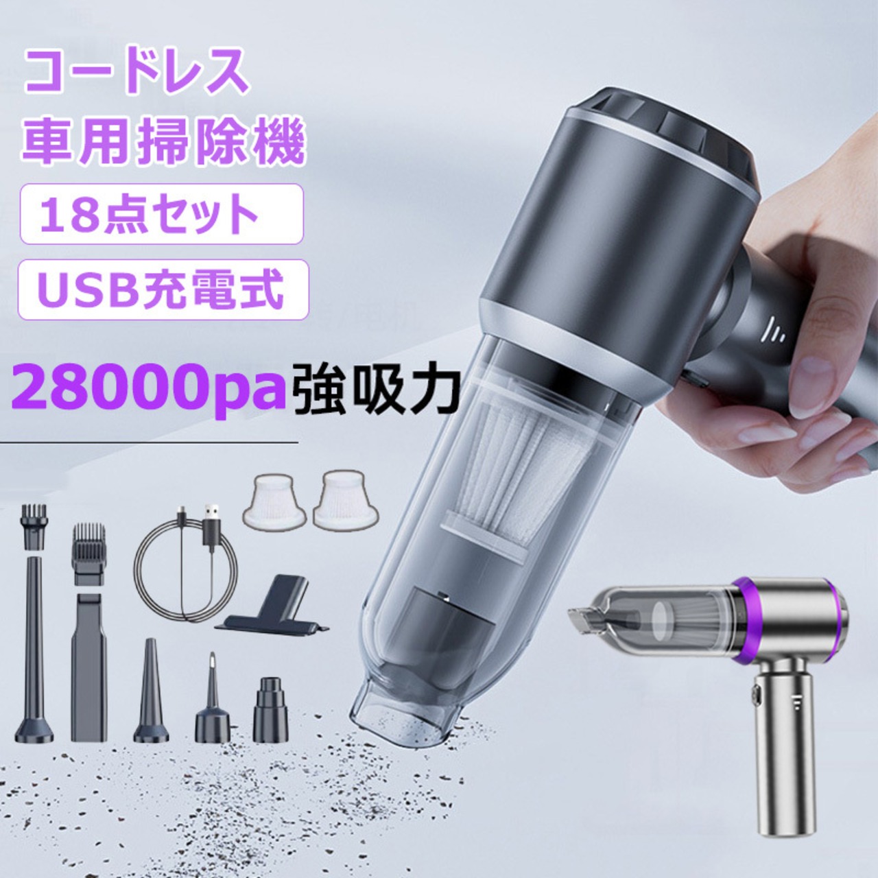 ハンディクリーナー 車用掃除機 コードレス 車 クリーナー 28000Pa 強力 吸引力